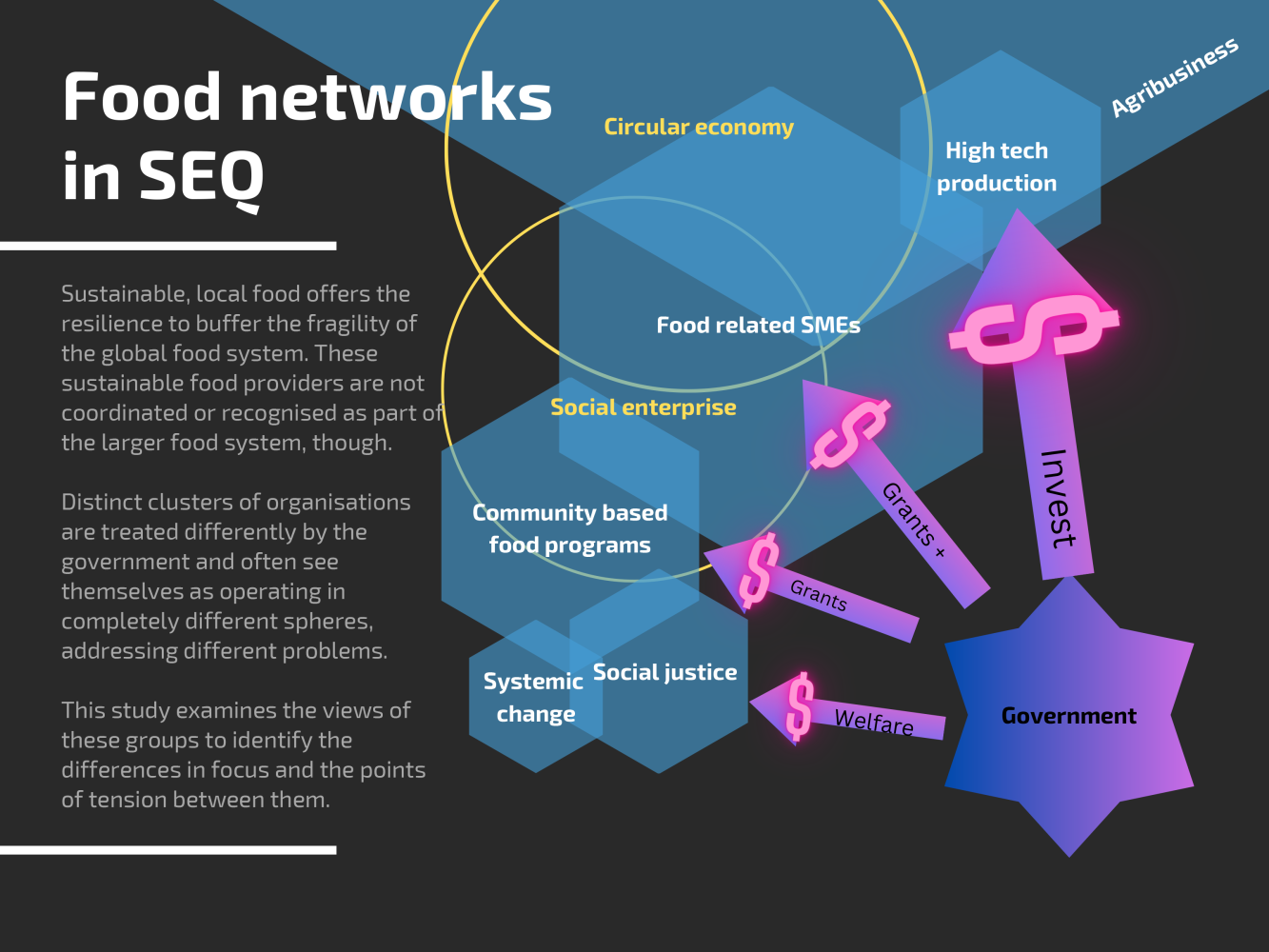 My mapping of the intentions, challenges and responses of food providers attempting to operate sustainably in Southeast Queensland confirms the innate tension between corporate agribusiness and attempts at deep sustainability. It also identifies a rich field of responses to actively regenerate ecological and social communities and so create an alternative future.