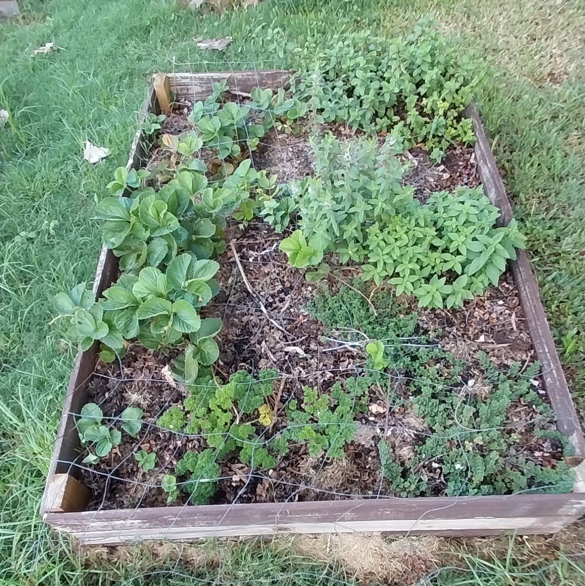 I recommended laying “Dog mesh” over the garden bed as I have done with my strawberries and mint, as you can see in the picture. I discovered that invention when Beth and I both had apartments at Riviera, and a bunch of residents started a community garden where Growing Forward now works.