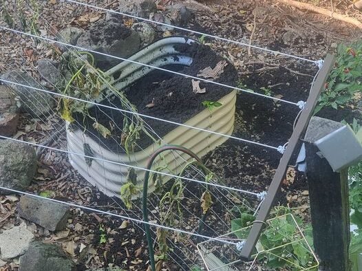Dog wire is also great for growing vines like tomatoes, wild spinach, cucumbers, grapes and passionfruit. It is easy to hang from a fence, or a wire strung between posts as you can see in one of the other pictures I have posted on the socials.